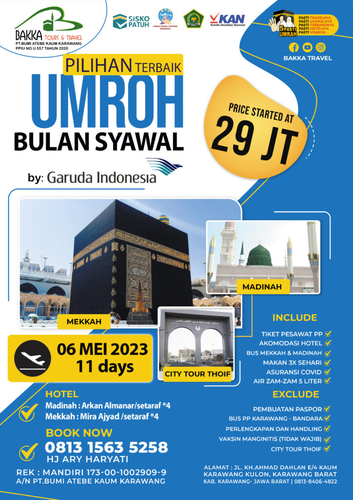 / Bismillah, Amankan segera paket Umroh dengan harga terbaik kami, untuk kenyamanan bapak ibu melaksanakan ibadah umroh.